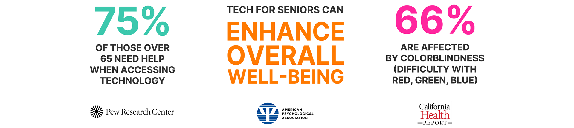 Initial research covered the relationship between seniors and technology, accessibility needs for seniors, and how to create successful UI design with these needs accommodated.